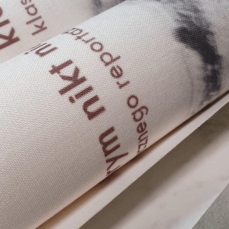 Do oprawy pracy wykorzystuję płótno introligatorskie, jak w zrealizowanym projekcie, okleiną introligatorską lub ekoskórę. Prace doktorskie często oprawiane są na życzenie klientów w skórę naturalną Jeśli chcesz wykonać zadruk na płótnie dostarczasz do mnie plik PDF, zawsze po wcześniejszych konsultacjach i wytycznych. Uzgadniamy spady, grubość grzbietu i kolor. W pracowni na miejscu wykonuję wydruk grafiki i zostawiam na chwilę do przeschnięcia.