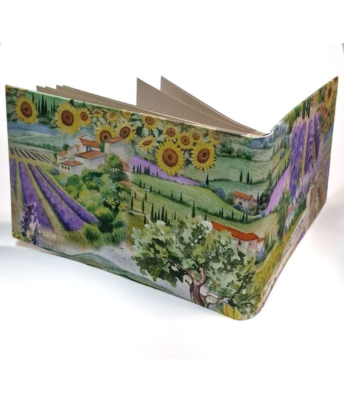 Album „Lawendowe pejzaże” to esencja prowansalskiego uroku zamknięta w pięknej oprawie, która zdobi półkę i kryje w sobie wspomnienia na lata. Wystarczy go otworzyć, by poczuć zapach lata i przenieść się w świat wspomnień. Każda z 54 stron, o wymiarach 20×33 cm, czeka na Twoje fotografie – wspomnienia zatrzymane w kadrze. Idealnie pomieści zdjęcia w różnych formatach: 9×13, 13×18, 10×10, 15×21 czy 15×23 cm.