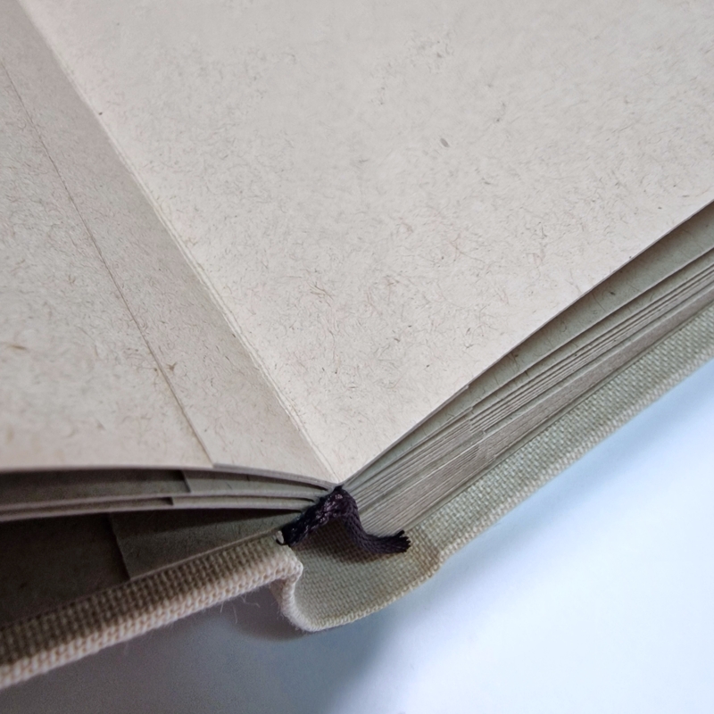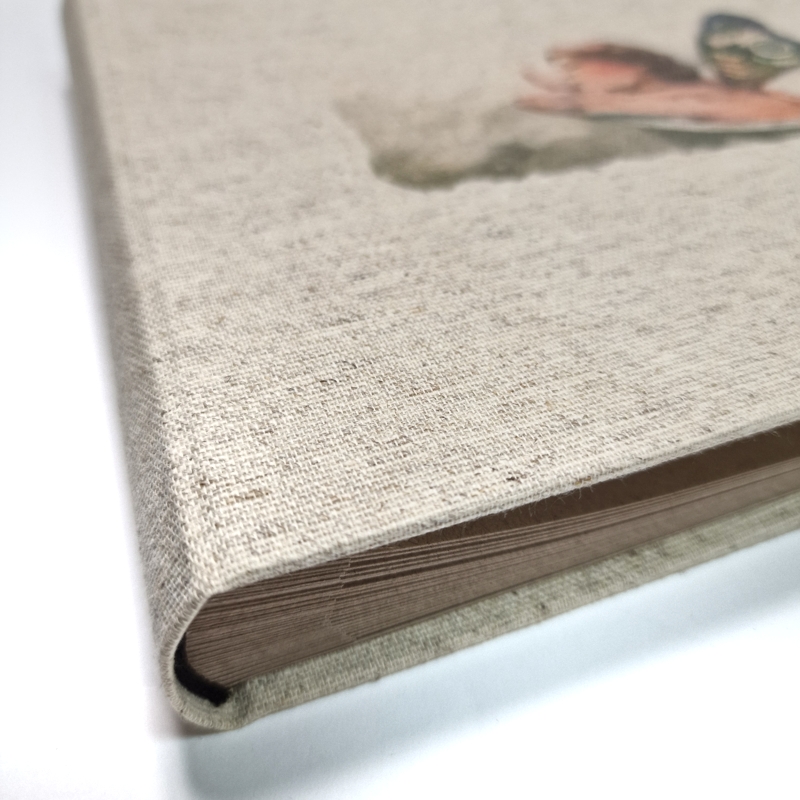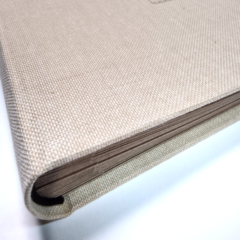 Ten kwadratowy album otula minimalistyczna len – tkanina o subtelnej fakturze, która pięknie komponuje się z każdym wnętrzem. W środku czekają grube, ciepło-beżowe karty, gotowe na wklejenie zdjęć z podróży, ślubu czy pierwszego roku życia dziecka. Ręcznie wykonany blok sprawia, że album otwiera się na płasko; możesz więc wygodnie komponować rozkładówki, dodawać podpisy lub drobne pamiątki.