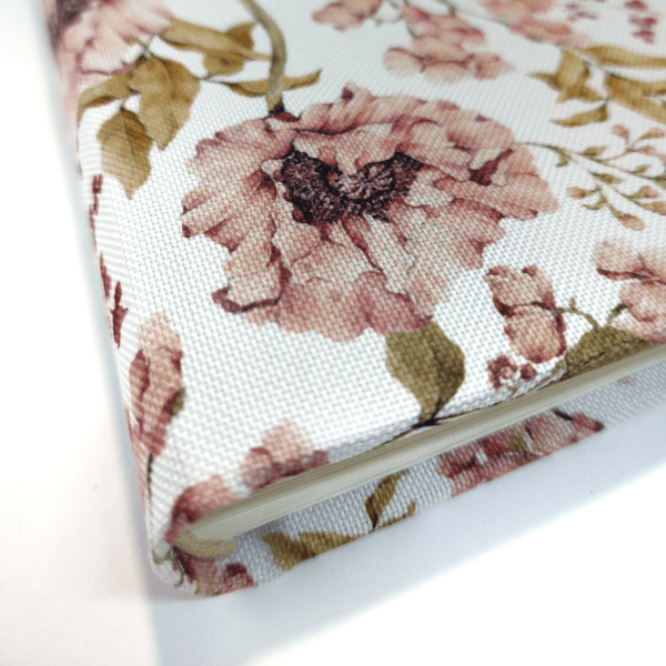 Do oklejenia oprawy użyłam pięknej wodoodpornej tkaniny z malowanymi makami.