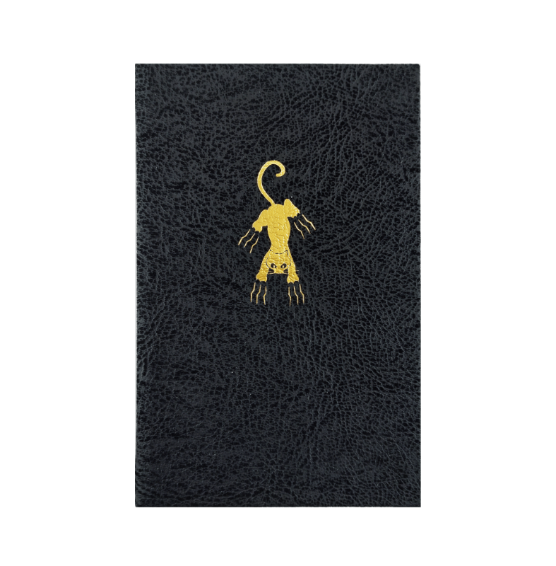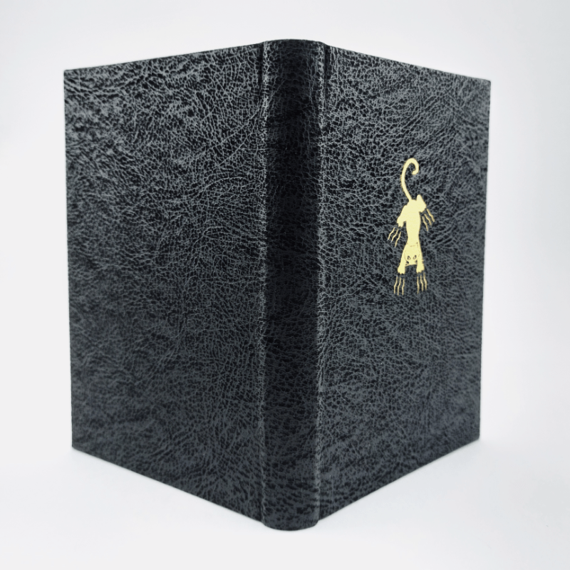Uszyłam go od podstaw. Okładka z grubej litej tektury introligatorskiej, obłożona delikatnie zamszową ekoskórą no i ta slodka grafika. Wyciągnięty koteł, wyzłocony na okładce. Każda kociara będzie zachwycona. Wiem, bo sama nią jestem. Kartki wewnątrz są w kolorze ecru w kropki co 5 mm.