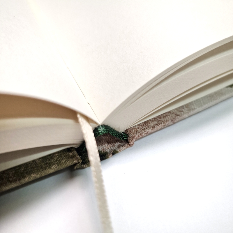 • Oprawa: szyta ręcznie – notes rozkłada się na płasko, co ułatwia rysowanie i pisanie.