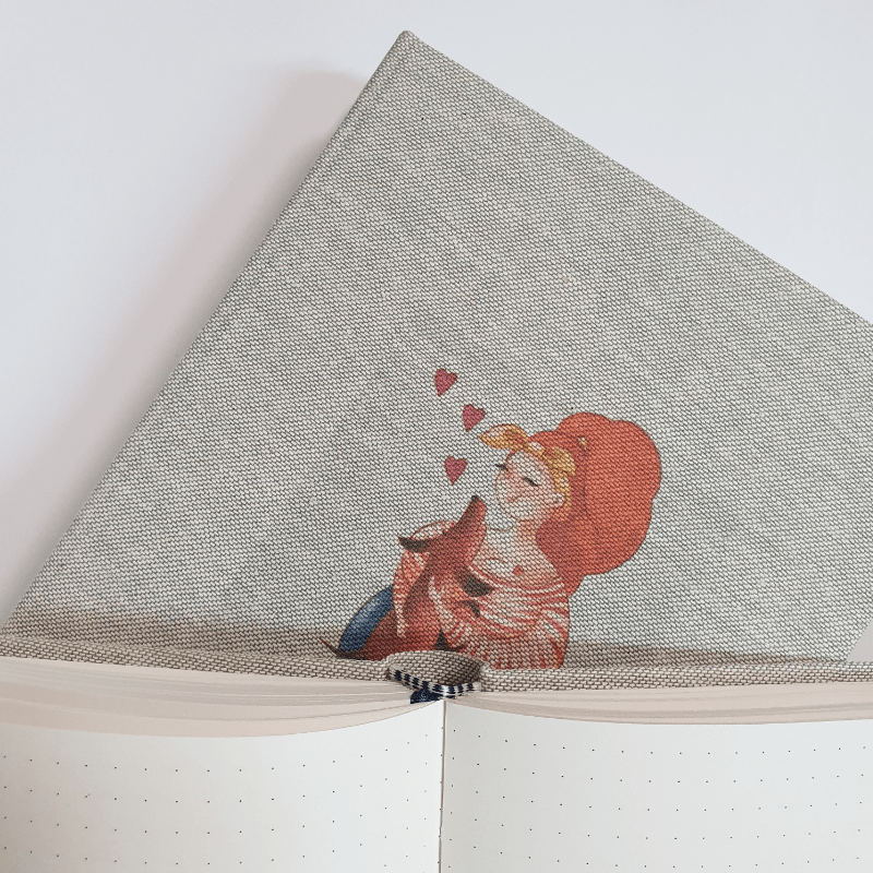 Walorem notesu jest to, że uszyłam go ręcznie a okładka została wykonana z wysokiej jakości lnu. Zdobi ją zabawna grafika kobiety i jej psiego przyjaciela oraz wspomniana wyżej sentencja. Notatnik stanowi część serii gdzie nasze bohaterki pozują w różnych sytuacjach, dzieląc się z nami życiowymi prawdami w formie haseł na dole oprawy. Nasz notes cieszy oko, bawi, może dać radość Tobie lub obdarowanej nim osobie.