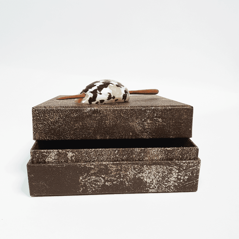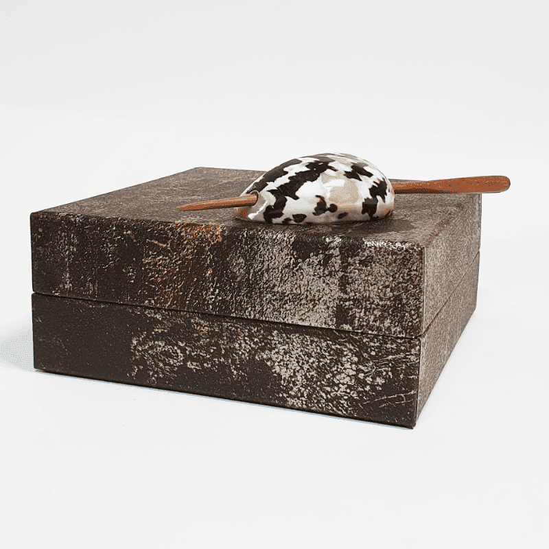 Wykonane jest z dbałością o każdy detal. Materiał wierzchni to wysokogatunkowy materiał imitujacy postarzały metal. Kojarzy się też ze starymi malowidłami w jaskniach czy poprostu z kolorami ziemi. Wymiary pudełka to 15x15x4 cm. Wyjątkowa kasetka może stanowić elegancki element wystroju wnętrza, będzie również idealnym prezentem dla każdej kobiety, która jest miłośniczką natury i ceni piękne przedmioty.